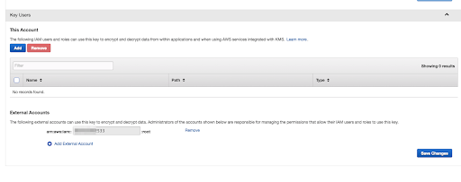 2. Add Account actInst account number in External Accounts inside the key properties and save the changes.